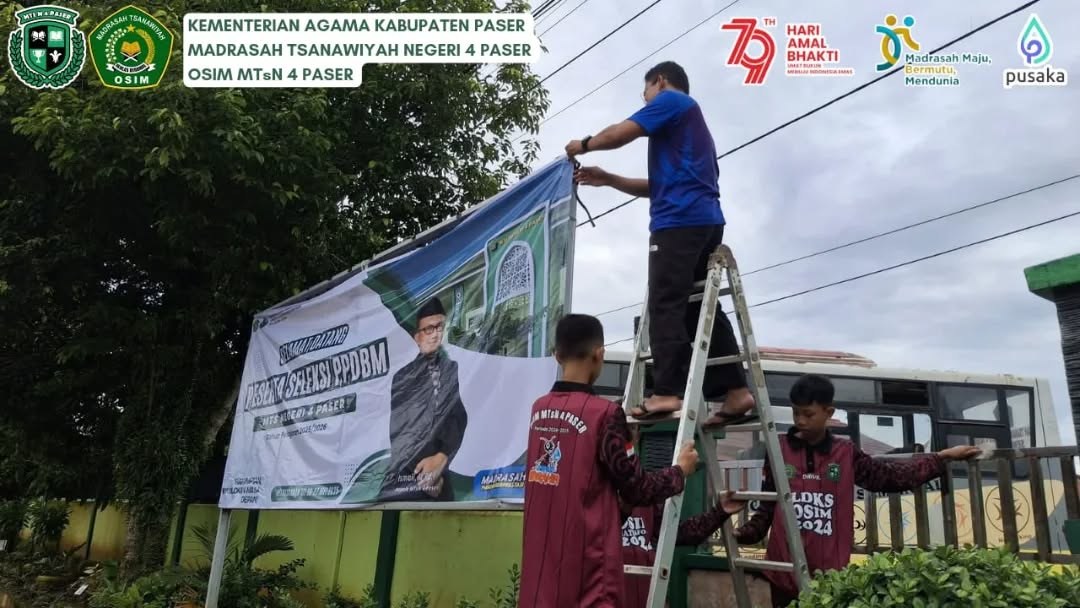 Panitia dibantu pengurus OSIM MTsN 4 Paser melakukan persiapan guna menyambut pelaksanaan Penerimaan Peserta Didik Baru Madrasah (PPDBM) Tahun Pelajaran 2025/2026 pada hari Jum'at, 23 Mei 2025.